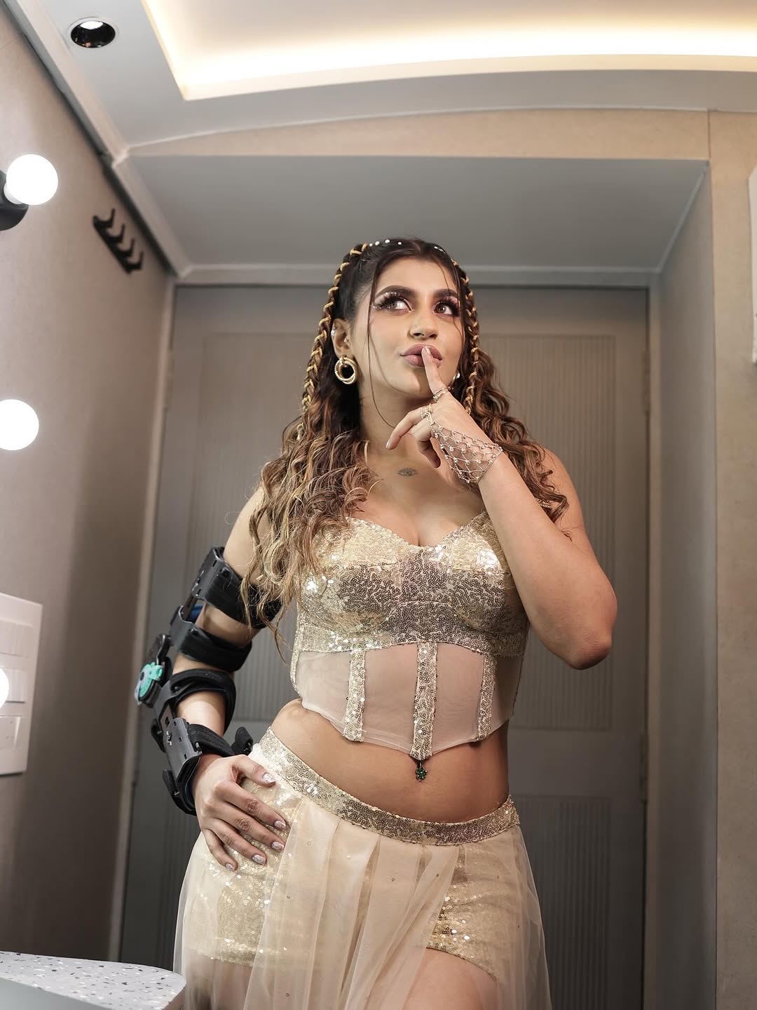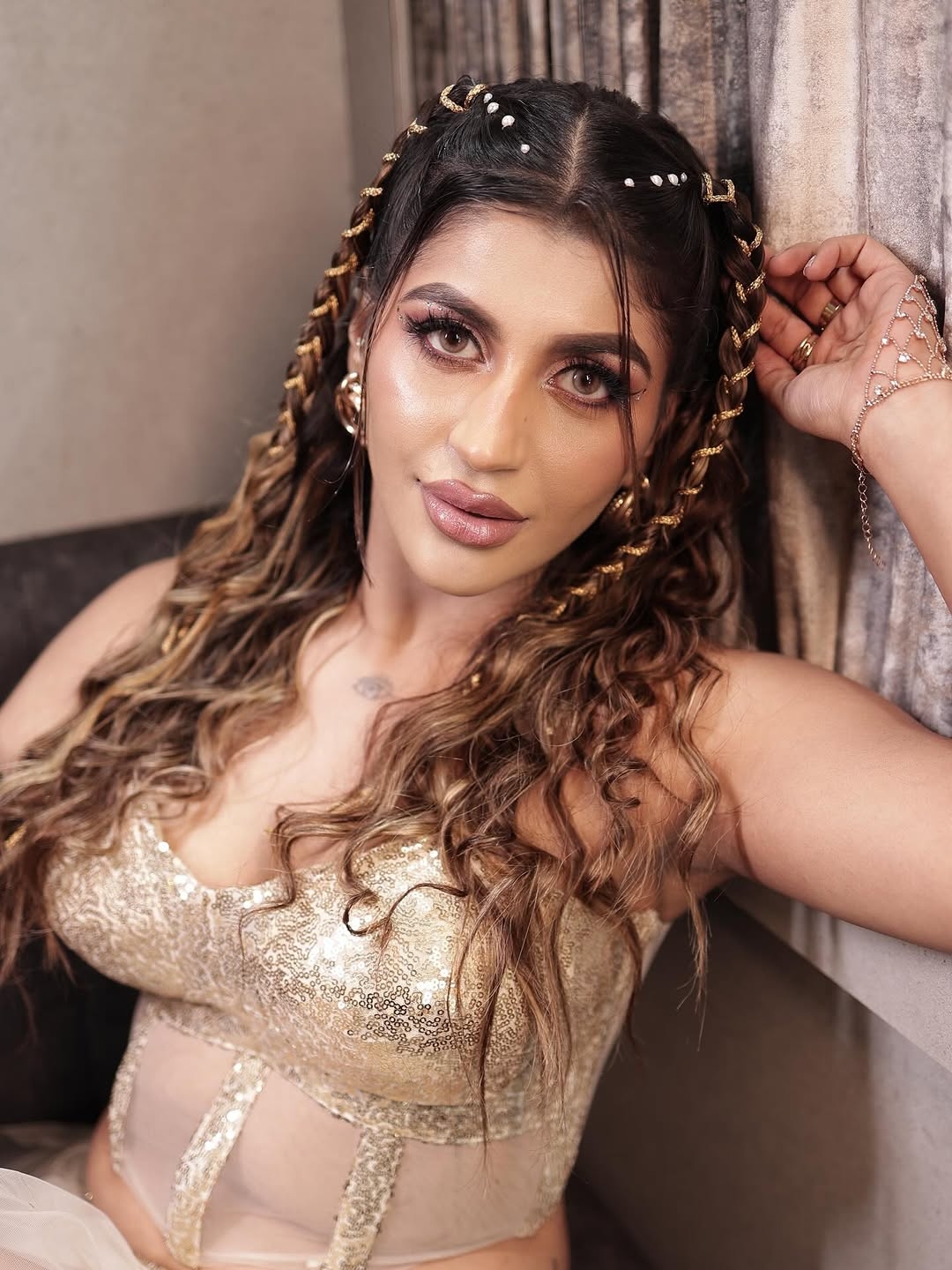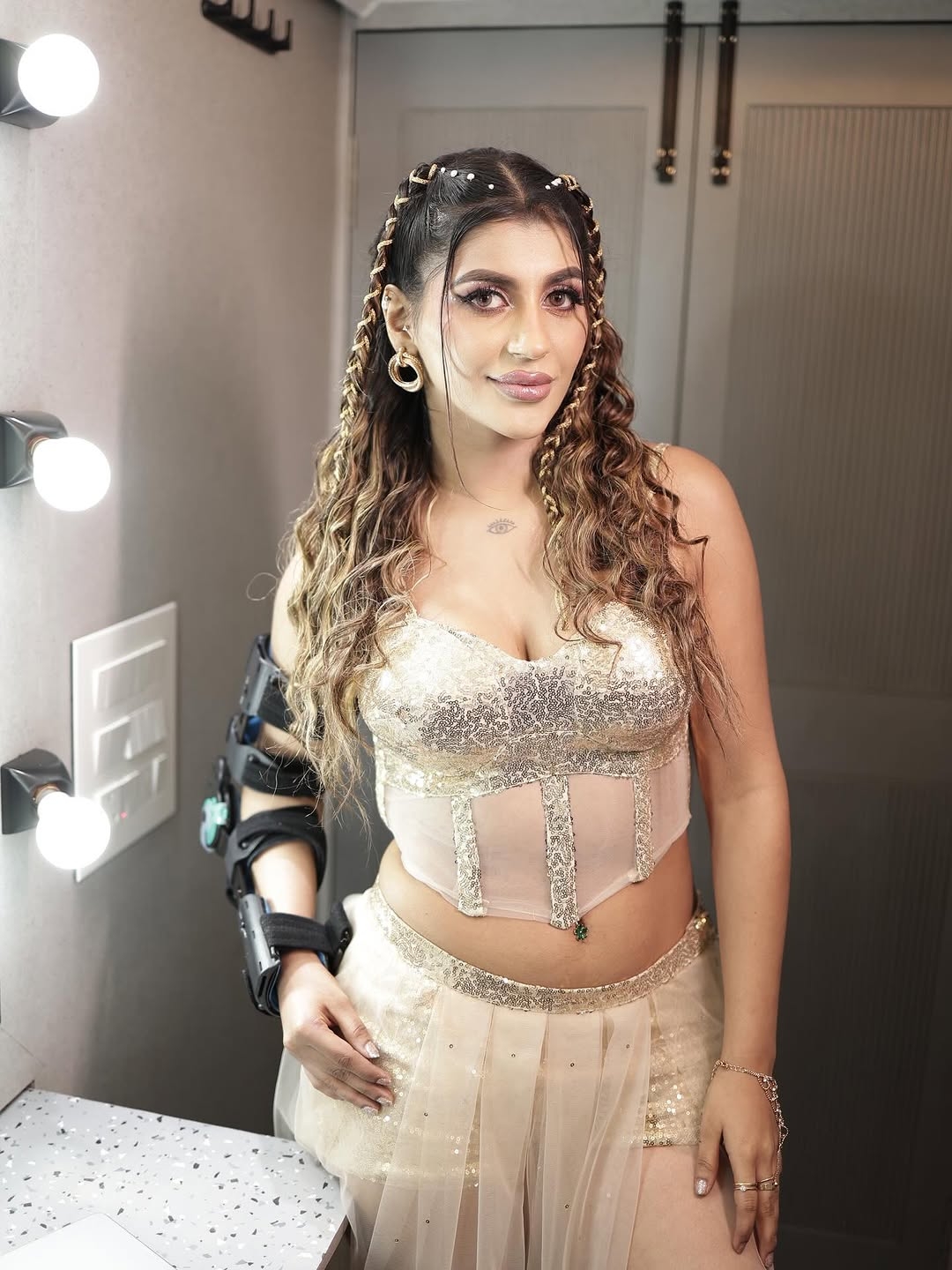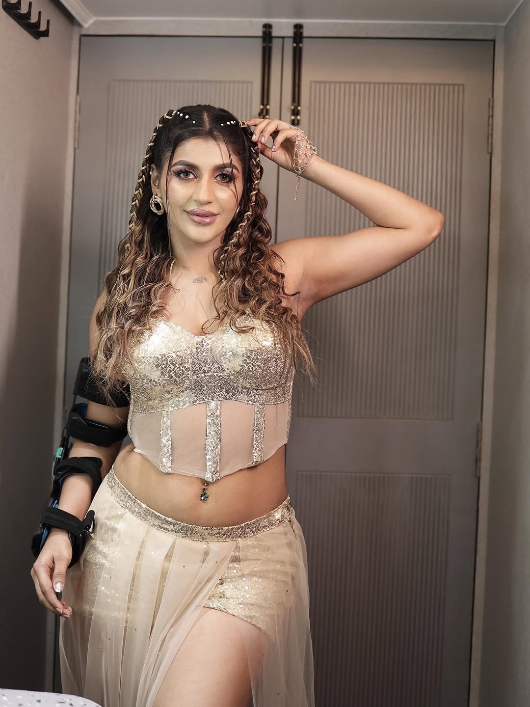 Yashika aannand sizzles in a glamorous fusion outfit..