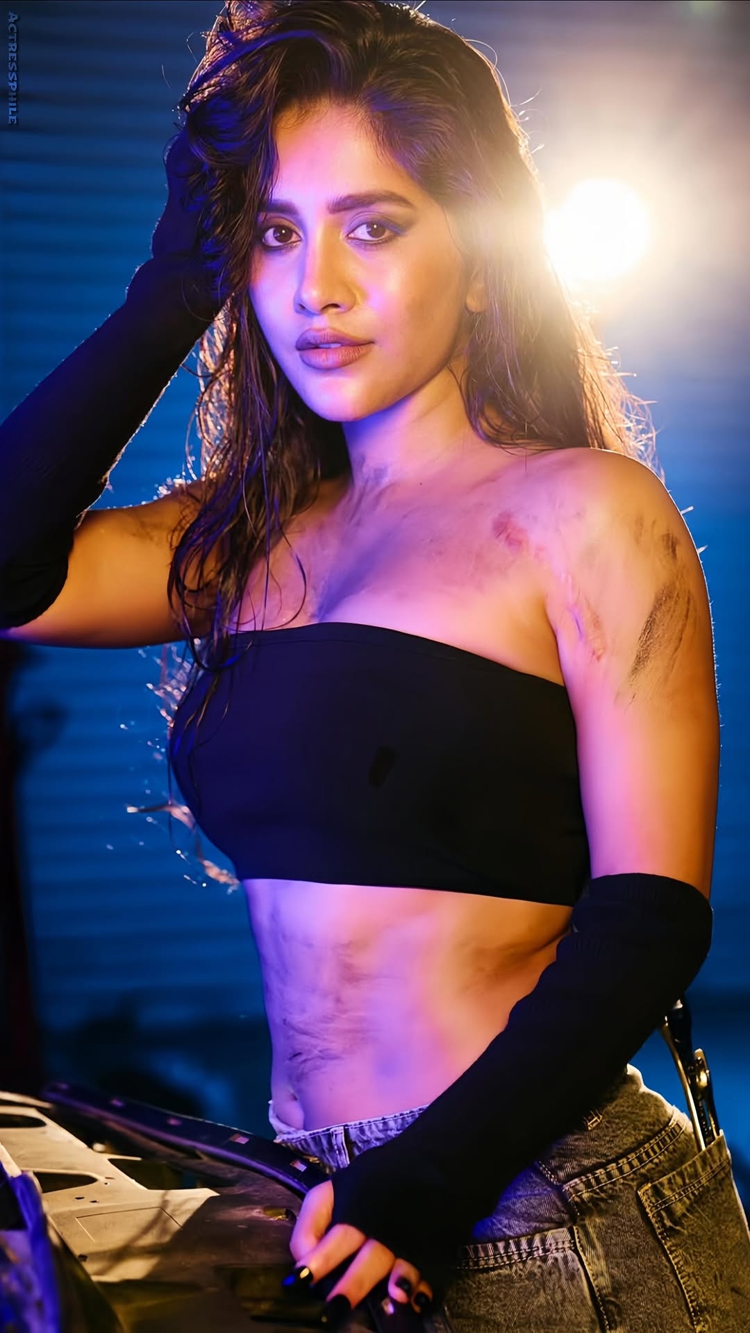 Nabha Natesh recently clicked her sizzling photoshoot in a strapless bikini top and pants. The photoshoot was taken in a car garage, where grease and dust were on her navel, making her look too hot. She also gave some bold and daring poses to expose her silky navel to her fans. Get ready to witness these spicy photos of Nabha Natesh which I’ve uploaded here, friends