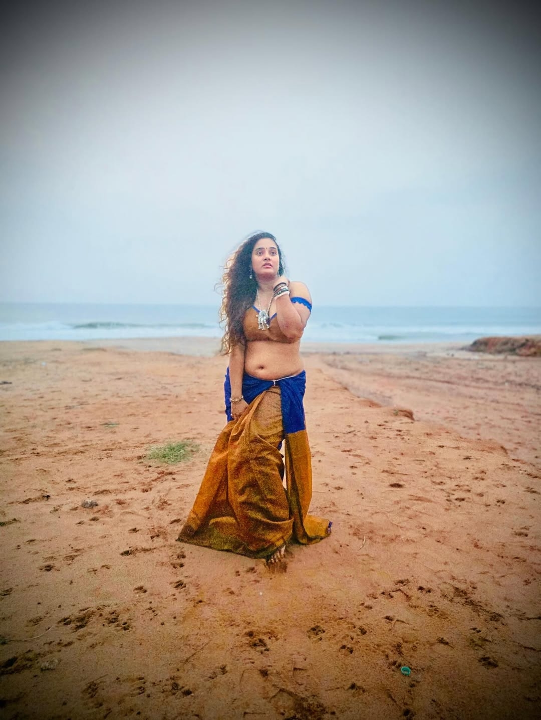 Soumya shetty somu, born as soumya killampalli, age 31, born and raised up in raipur, ahhattisgarh, is one of the hot telugu movie actress and model. Soumya shetty gained weight and looking chubby and hot. Recently soumya shetty somu clicked her hot outdoor saree photoshoot in a blue designer saree and she dragged her saree pallu and exposed her chubby navel and navel folds to her fans. Enjoy these spicy photos of actress soumya shetty here guys.