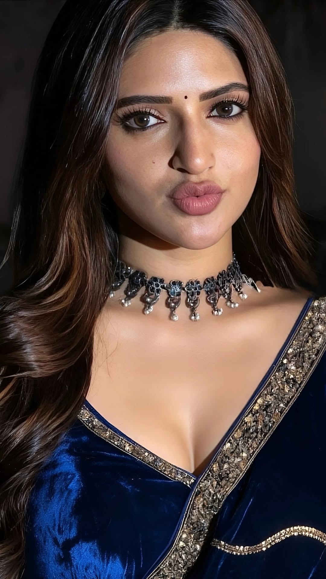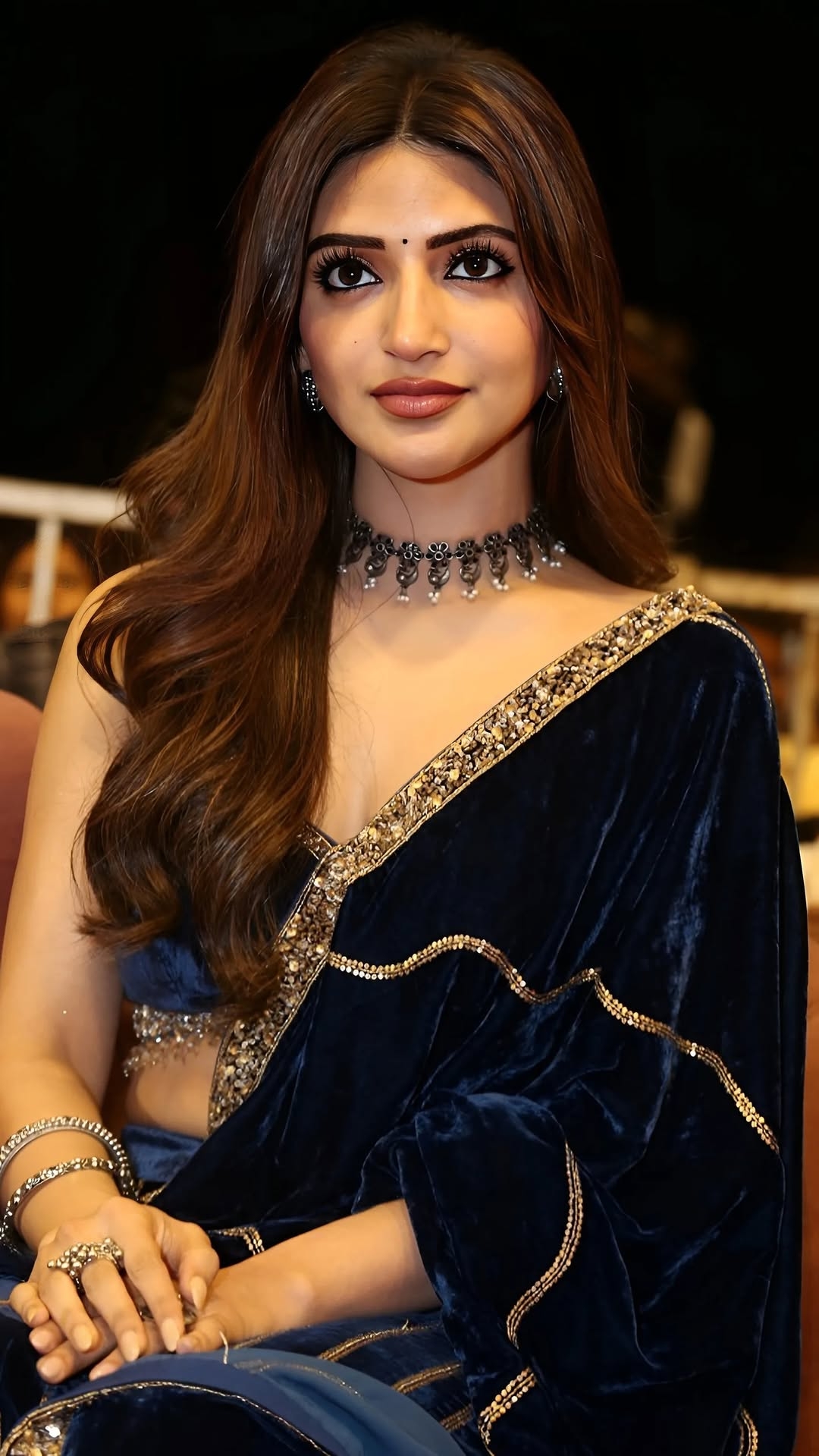Sreeleela is now acting with ravi teja in his upcoming telugu movie “mass jathara”. This movie is scheduled to release in 31st october. Few days ago, in this movie pre release event, sree leela sizzles in a dark blue velvet saree with gold embroidery and gave a full glamour feast for her fans eyes. Here let me post some of these sizzling photos of actress sreeleela. Enjoy her cuteness guys.