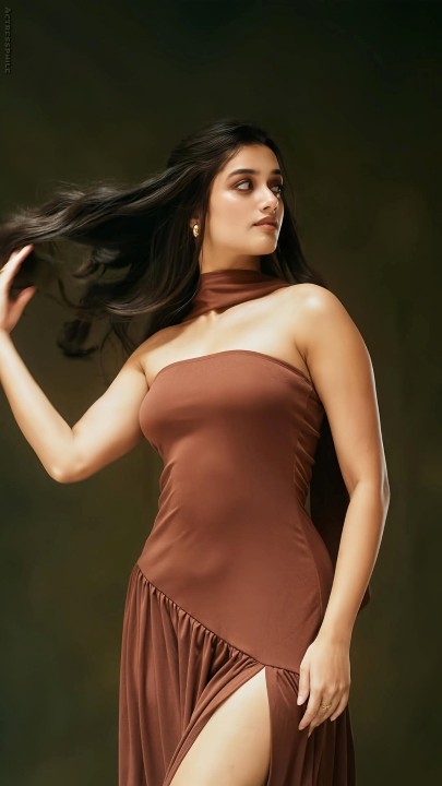Bhagyashri Borse, a 26 years old young and budding actress and model in the Telugu film industry. Bhagyashri Borse, from time to time, is offering a glamour feast to her fans through exclusive photoshoot pictures. In her recent photoshoot in a brown color strapless side slit gown, bhagyashri borse flaunted her silky thighs to her fans. Get ready to enjoy these hot photos of actress bhagyashri borse here dudes.