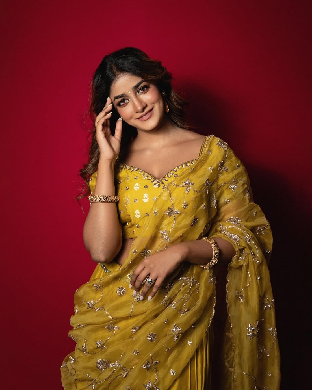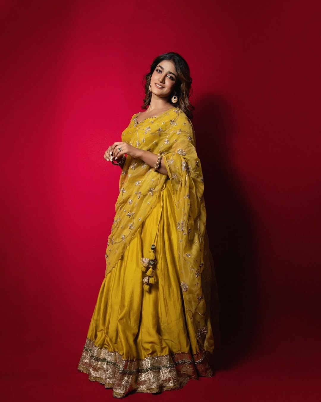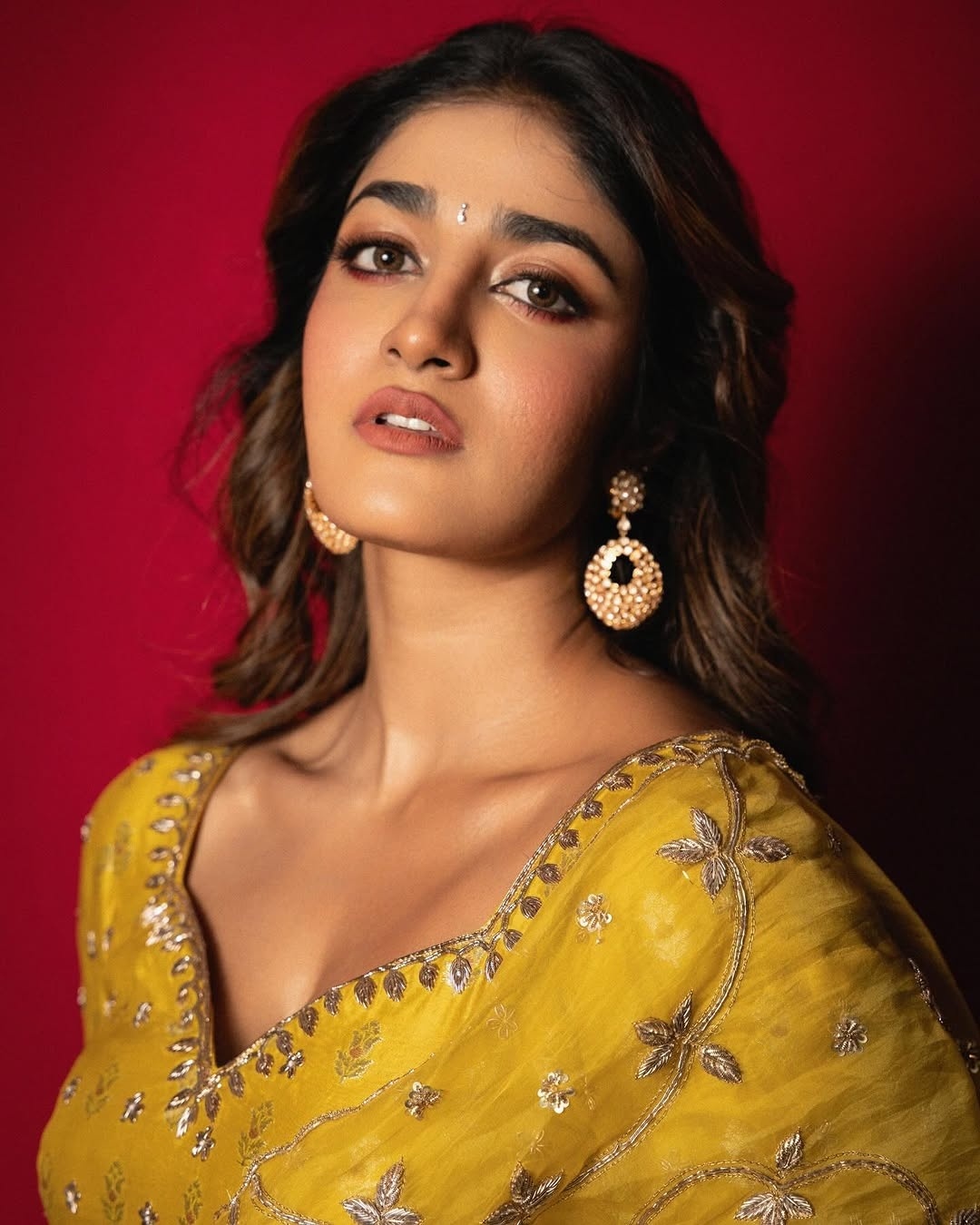 Dimple hayathi, age 27, born and raised up in vijayawada, andhra is one of the leading tamil & telugu movie actress and model. Dimple hayathi is currently acting with ravi teja in his upcoming movie Bhartha Mahasayulaku Wignyapthi, slated for Sankranthi 2026 release. Recently, dimple hayathi clicked her cute photos in yellow dhavani. Here let me pist these cute yellow dhavani photos of dimple hayathi for your viewing pleasure friends.