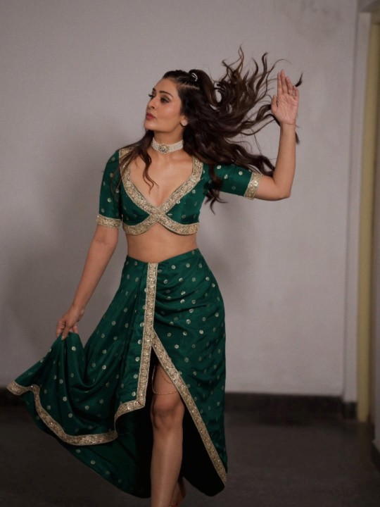 Payal rajput, age 33, born and raised in delhi, is one of the leading indian actress and model. Payal rajput started her career as a television actress and now she is a leading telugu and punjabi movie star. Recently, payal rajput have uploaded her hot photos in green top and skirt in her insta page. These photos were her BTS photos from her recent shooting. Enjoy these hot cleavage and thighs exposed photos of actress payal rajput here guys..