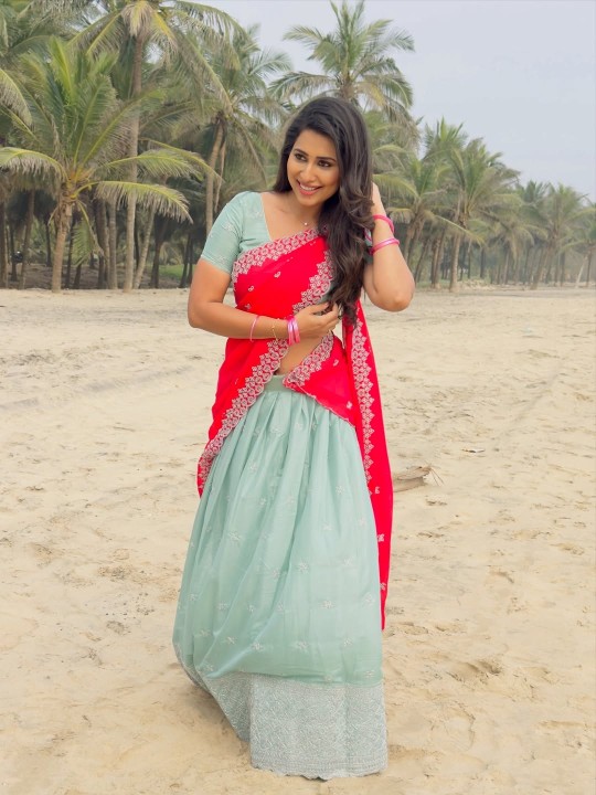 Priya hegde, age 31, born and raised in udupi, karnataka, is one of the gorgeous and leading telugu movie actress and model. Few days ago, priya hegde dressed up in a low hip dhavani and gave some hot poses by standing in a beach. In these beach photos, priya hegde exposed her silky navel to her fans. Here let me post these gorgeous navel beach photos of priya hegde in low hip dhavani. Enjoy her hotness guys..
