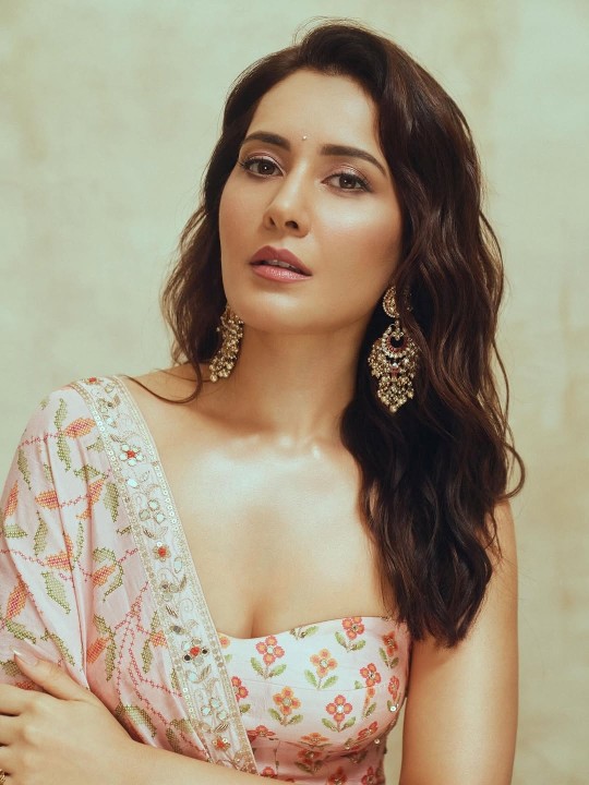 Raashi khanna, age 35, born and raised up in new delhi, is one of the gorgeous and leading tamil, telugu and bollywood movie actress and model. Recently raashi khanna spotted in a movie event in a light sandal color strapless top and saree like skirt. In this sizzling outfit, raashi khanna exposed her toned physique, cute cleavage and silky navel to her fans. Here let me post some of these hot photos of actress raashi khanna. Enjoy her hotness dudes.