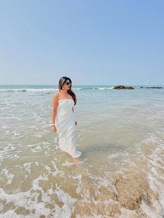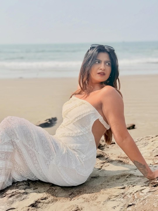 Risha gowda, age 27, born and raised in mysore, karnataka, is one of the gorgeous telugu and kannada movie actress, Miss karnataka 2020 title winner and model. Recently risha gowda clicked her breathtaking beach photoshoot in a strapless white gown, flaunting her toned physique to her fans. Here let me present you some of these gorgeous beach photoshoot photos of actress risha gowda for your viewing pleasure friends..
