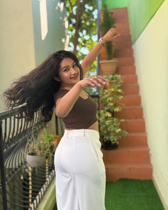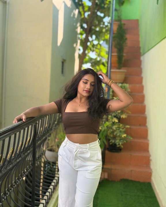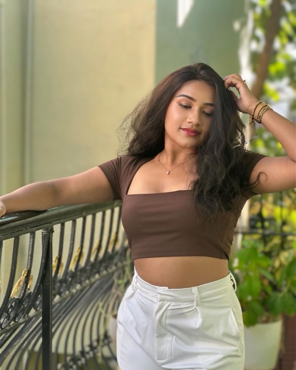 Tamil television actress Raveena Daha looked gorgeous in a brown cropped top and white pants during a photoshoot. Leaving her hair loose without a braid or clip, Raveena Daha gave a super stylish and romantic look that captivated her fans. These pictures of Raveena Daha are now going viral on social media. I have shared these hot photos of the actress here, enjoy them friends!