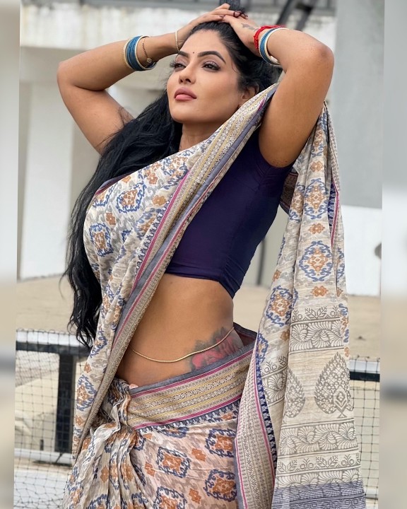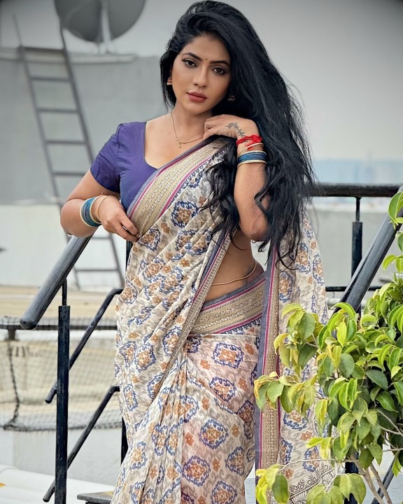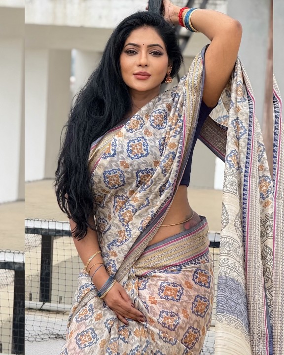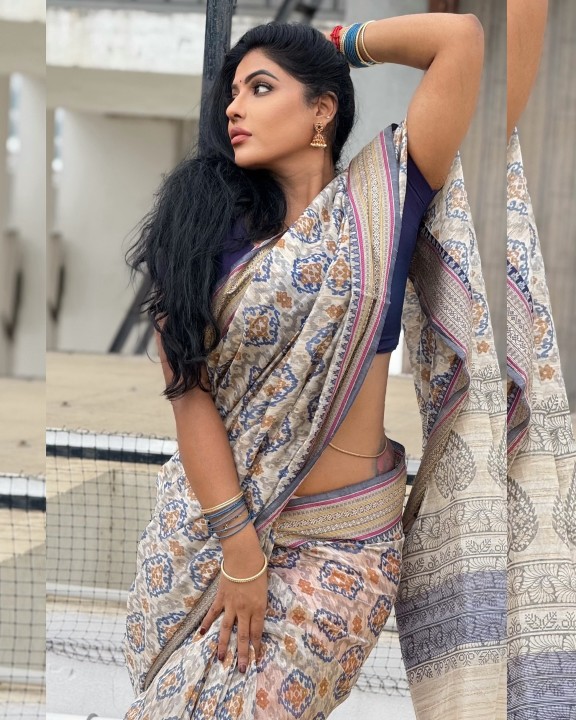 Reshma pasupuleti, one of the leading tamil tv serial actress and model. Reshma pasupuleti used to click her homely saree photos from her shooting spot and upload it in her insta page. Few days ago, reshma pasupuleti clicked her cute and homely saree photos with wet loose hair in a home. These photos od reshma pasupuleti are now making waves in insta page. Enjoy these hot navel exposed photos of actress reshma pasupuleti here guys.