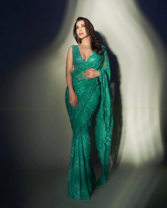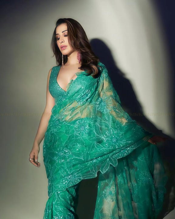 3295200cookie-checkSophie choudry seductive photos in low neck transparent green saree..