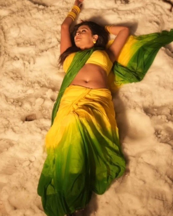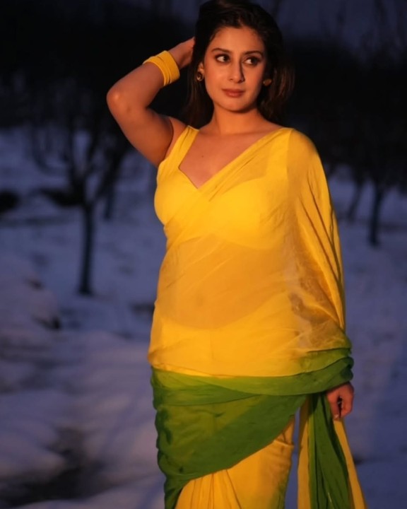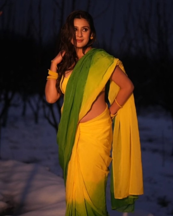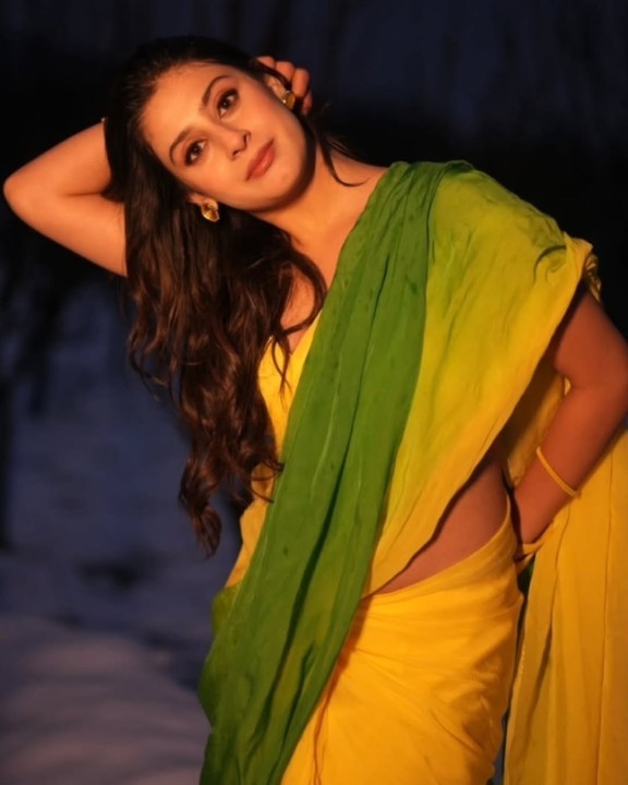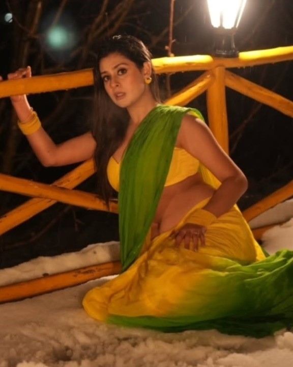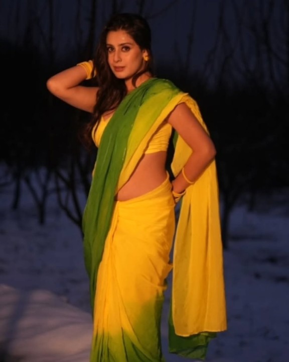 Isha malviya, age 22, born and raised in madhya pradesh is one of the popular hindi tv serial actress and model. She raised to fame by contesting in bigg boss 17 hindi reality show. Recently isha malviya clicked her night time photoshoot in a yellow color sleeveless saree and gave some hot poses to mesmerize her fans. In these hot saree photos, isha malviya flaunted her silky navel to her fans. Enjoy these night time saree photos of isha malviya here guys..