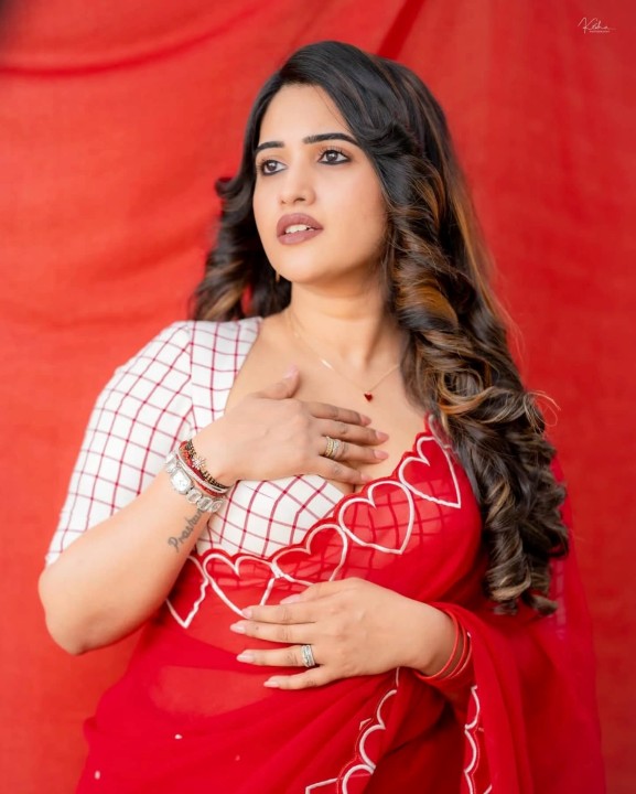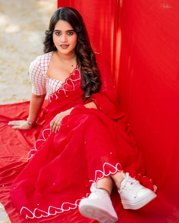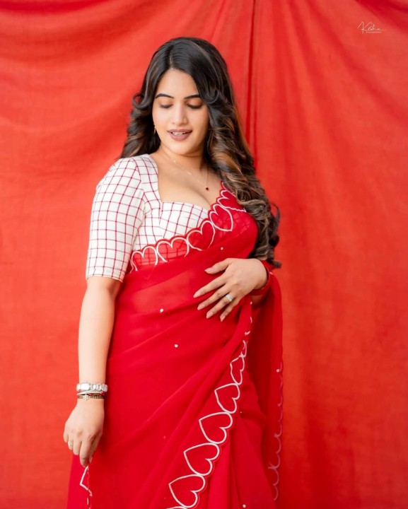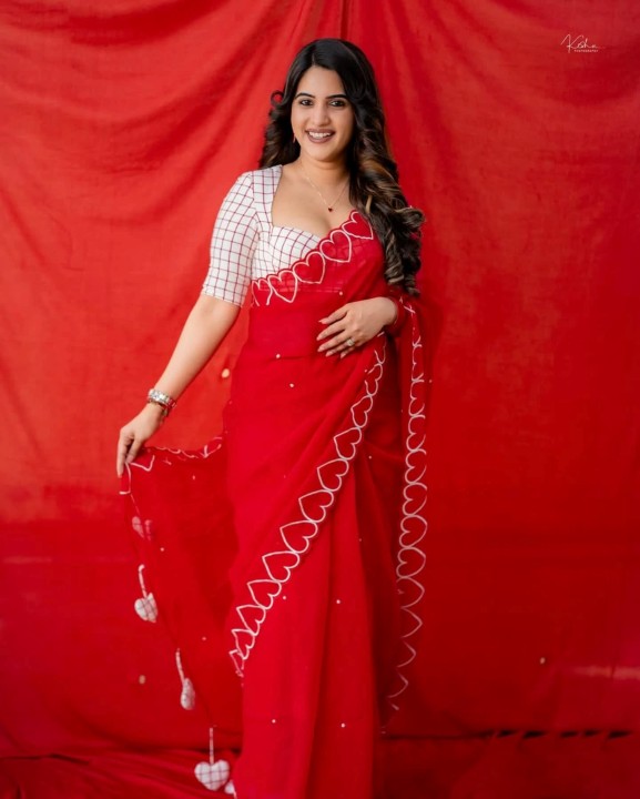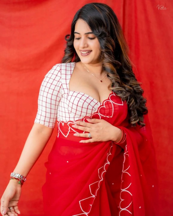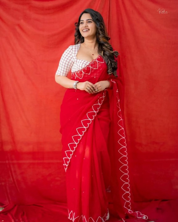 Sravanthi chokrapu, age 31, born and raised in anantapur, andhra pradesh, is one of the popular telugu tv actress, anchor and presenter. She also acted in few telugu movies. Recently, sravanthi chokrapu dressed up in a low neck red saree and gave some cute and beautiful poses to photographers. sravanthi chokrapu exposed her chubby cleavage in these cute red saree photos. Enjoy these beautiful red saree photos of telugu tv actress sravanthi chokrapu which i’ve posted here for u guys..