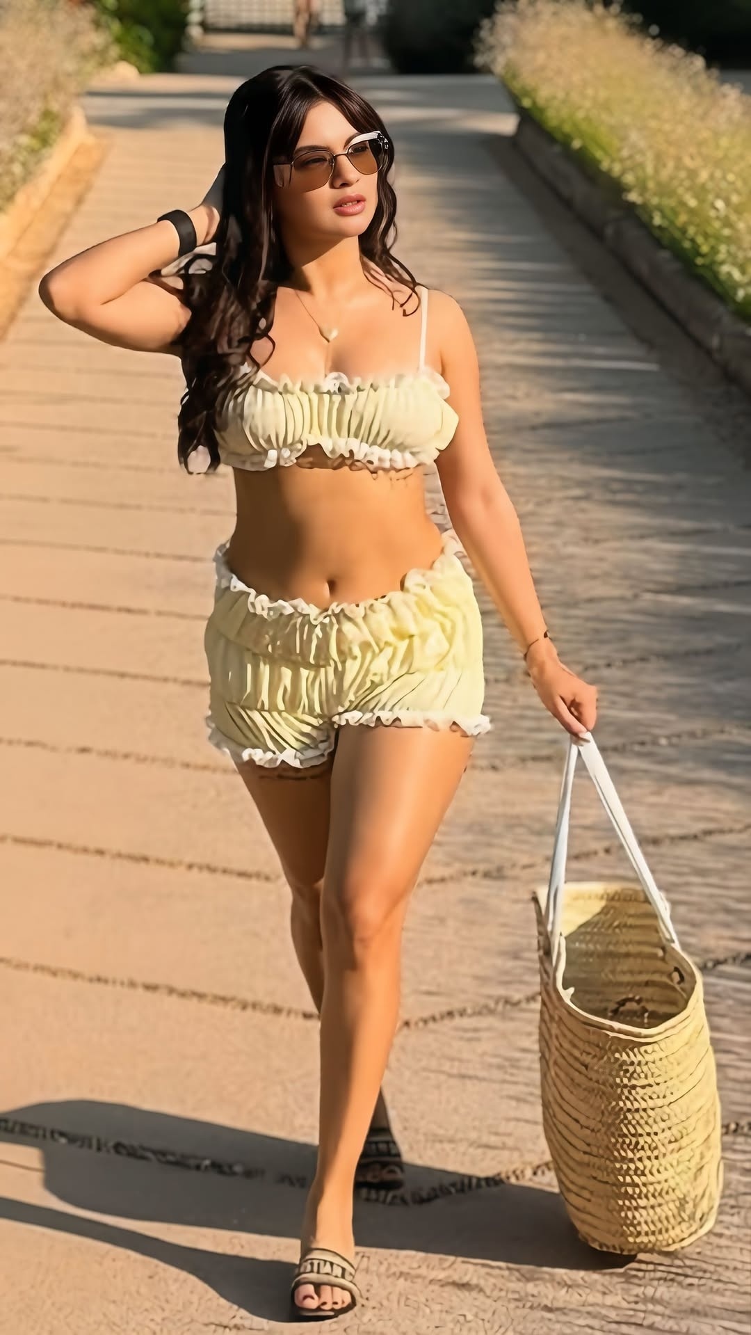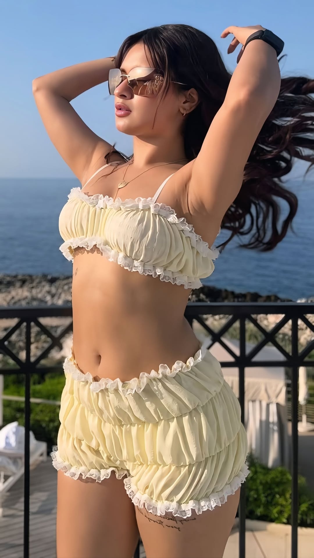 Avneet kaur, age 24, born & raised in jalandhar, punjab, is one the gorgeous and leading young hindi tv serial actress and model. Few days ago, avneet kaur dressed up in a ruffed sleeveless cropped top and high waisted shorts, exposing her silky navel, thunder thighs & toned physique to her fans and clicked hot photos in this outfit. Here let me present you these gorgeous photos of avneet kaur for your viewing pleasure friends. Enjoy her hotness dudes..