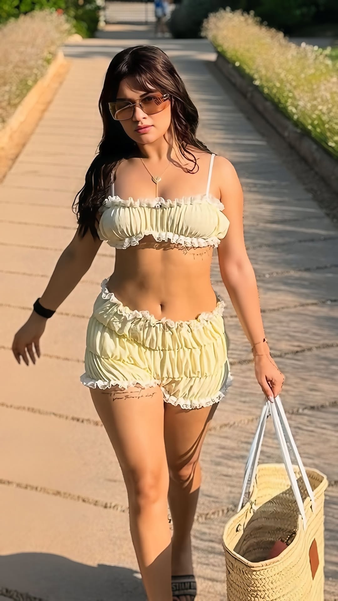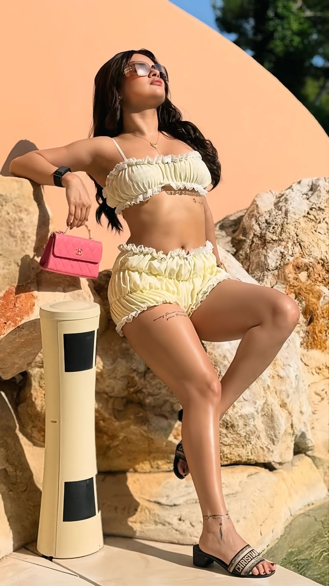 3448910cookie-checkAvneet kaur poses hot in a sandal color two piece summer set..